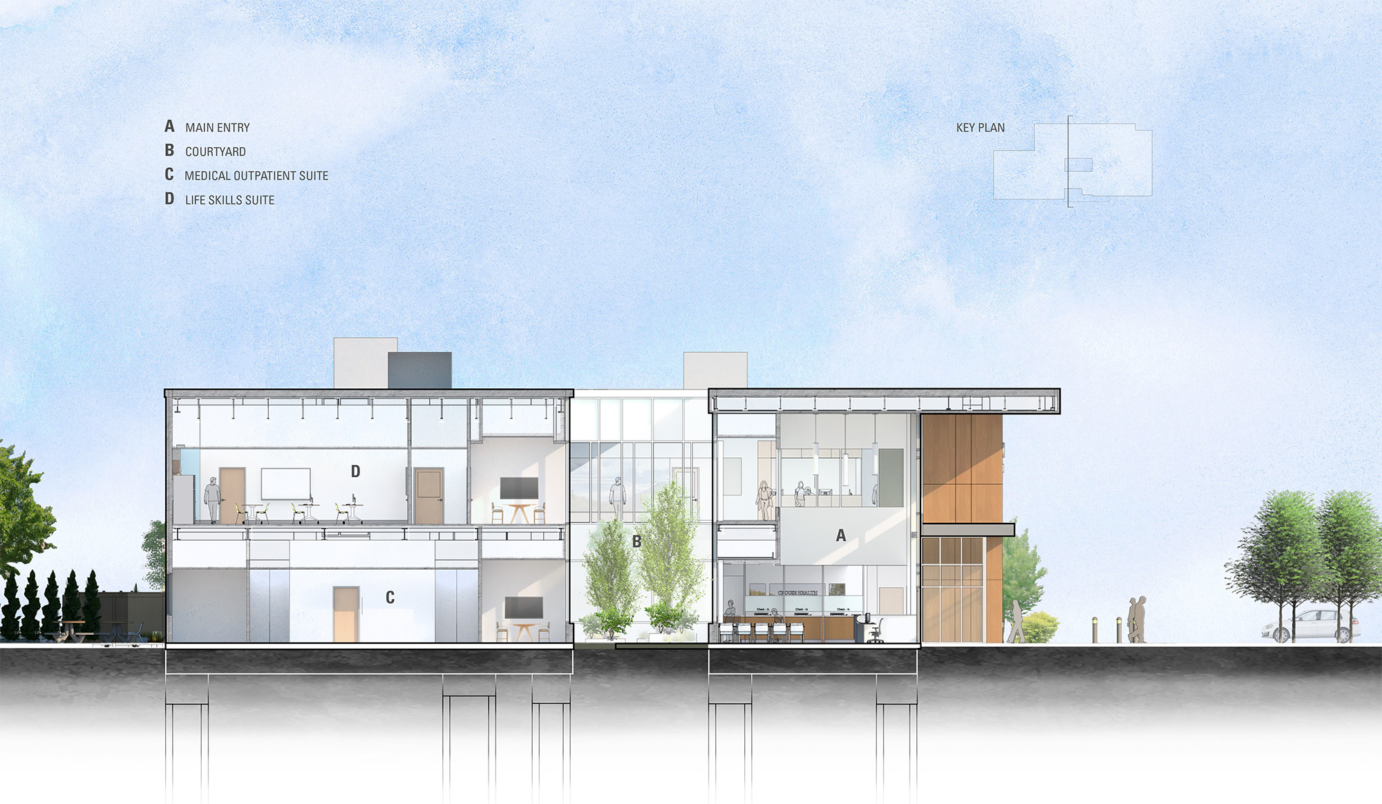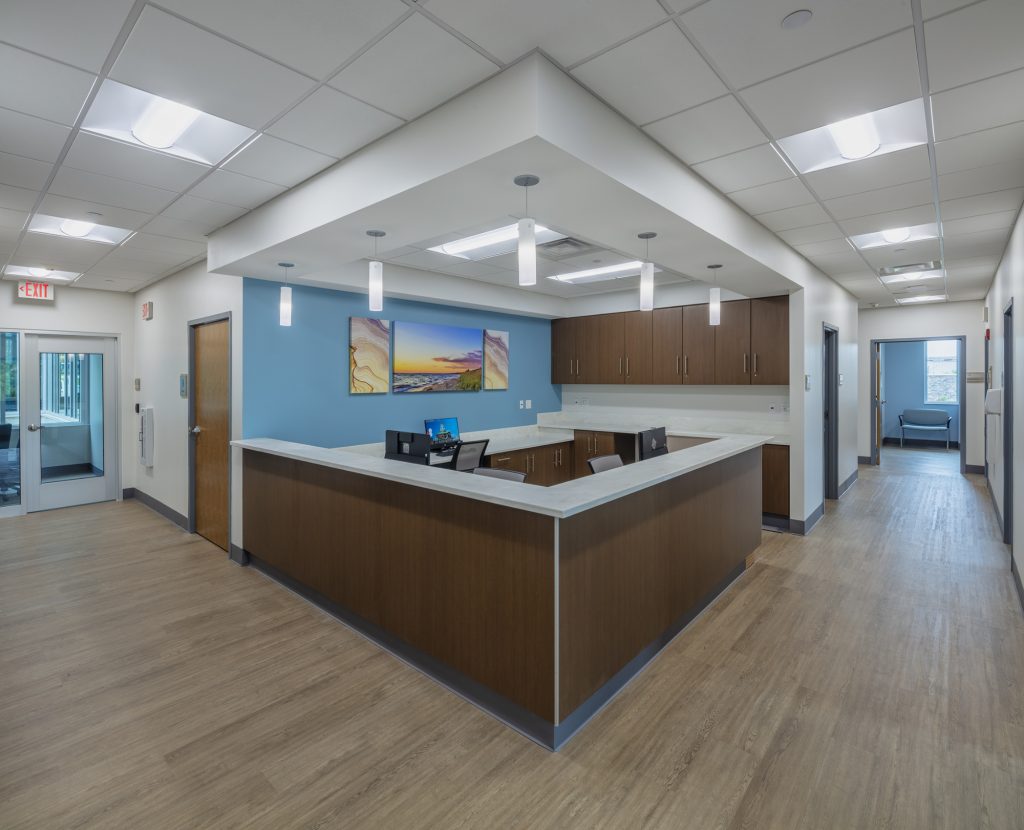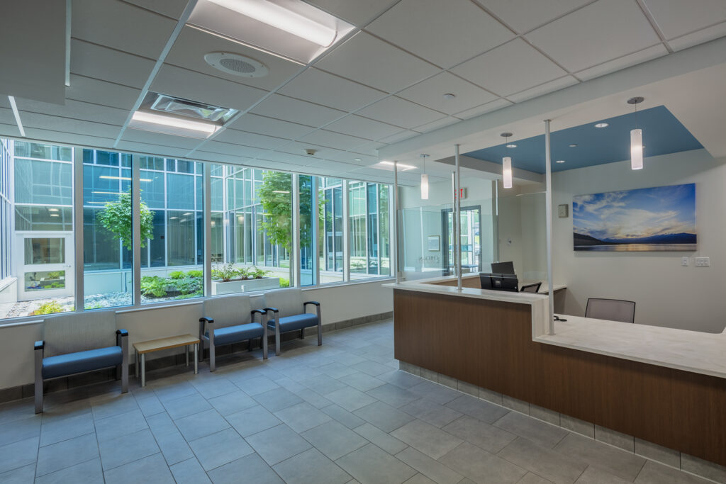 Crouse Health’s Pomeroy Treatment Center, located in Syracuse along Erie Boulevard East, is a 42,000 square foot outpatient health facility that supports medicated treatment programs, which includes a primary care suite, activity and group therapy spaces, as well as one on one counseling offices.