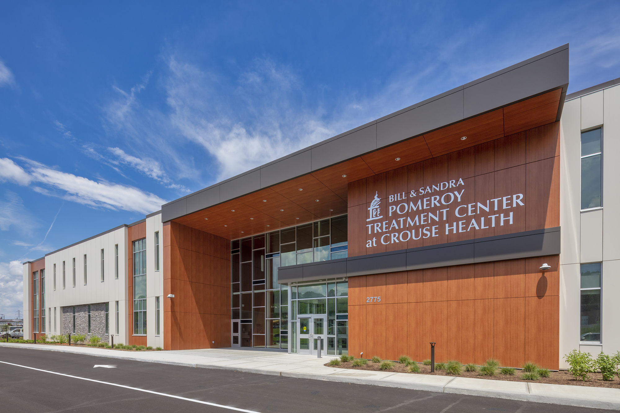 Crouse Health’s Pomeroy Treatment Center, located in Syracuse along Erie Boulevard East, is a 42,000 square foot outpatient health facility that supports medicated treatment programs, which includes a primary care suite, activity and group therapy spaces, as well as one on one counseling offices.
