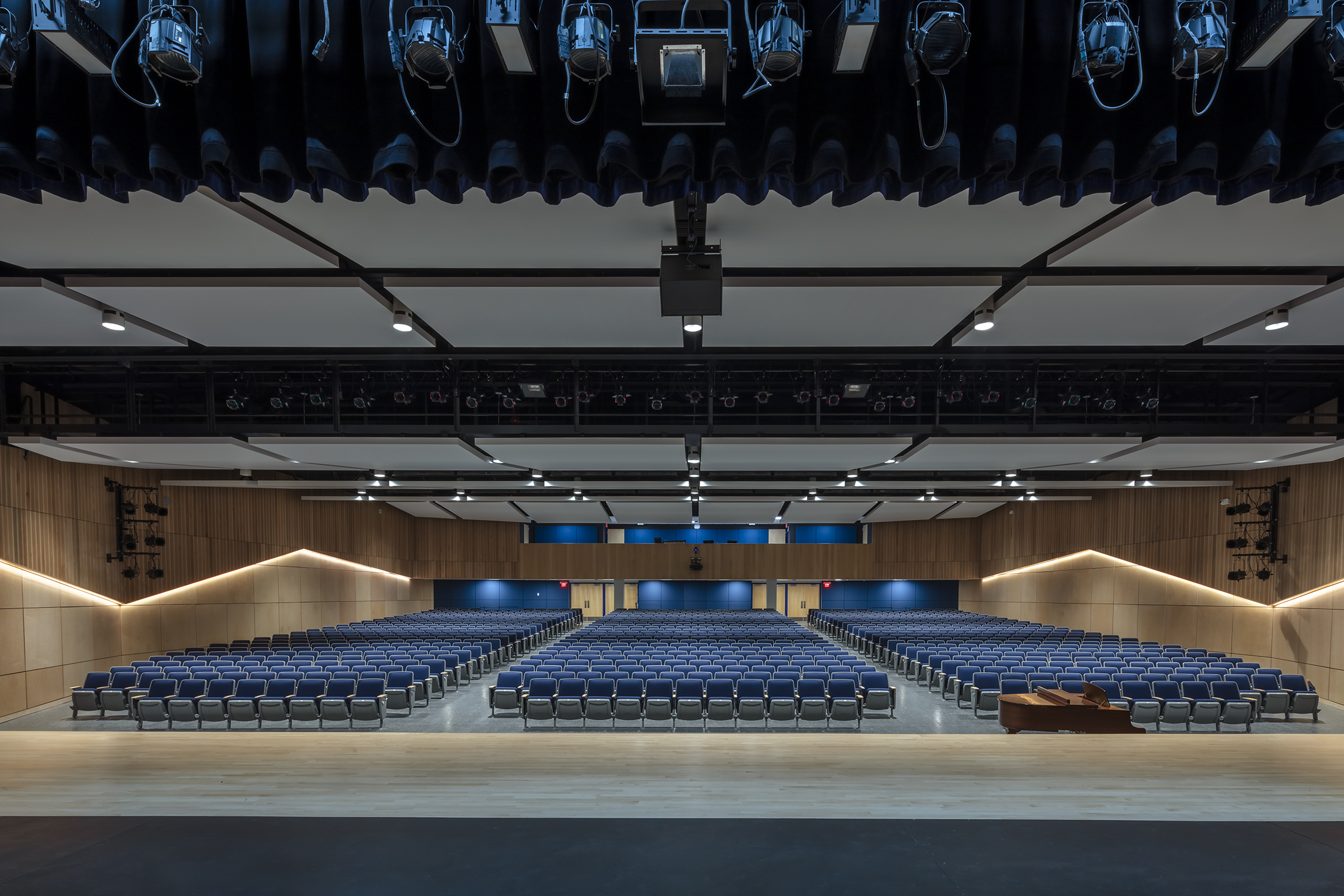 With the Media Center relocated, the auditorium was stripped down to its masonry shell and then rebuilt to create a proper acoustical soundscape.