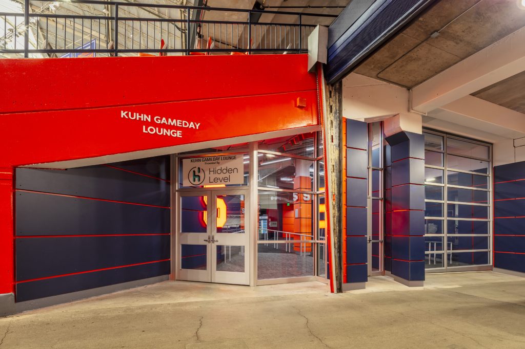 The Kuhn Gameday Lounge is a premium field-level and courtside space located within the JMA Wireless Dome on the Syracuse University campus. Designed to enhance the game-day experience, the lounge provides a gathering space for pre-game festivities for football, basketball, and lacrosse, as well as a place for fans to reconnect during halftime.
